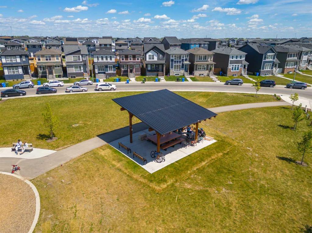 Welcome to this modern, no condo fee, fully developed, end-unit townhome, built in 2019 by Shane Homes. Offering a separate side entrance for a potential secondary suite (with city of calgary permits and approval), this home presents an exceptional opportunity for multi-generational living or future rental income. The main floor welcomes you with a spacious front entry leading into a bright, open-concept living, kitchen, and dining area. The modern kitchen features contemporary cabinetry, quartz countertops, a large eat-up island, pantry, and stainless steel appliances. A convenient 2-piece bathroom and a generous boot room with direct access to the fully fenced backyard and double garage complete the main level. Upstairs, the second floor offers a laundry room, three well-appointed bedrooms, including a spacious primary retreat with a walk-in closet and private ensuite bathroom. The fully developed basement, completed by the builder, continues the home’s cohesive design and modern finishes. This level includes a large bedroom, 4-piece bathroom, mechanical/storage room and a spacious living/entertaining room, making it ideal for guests, extended family, or future suite potential. The home features a new roof and siding (2025), New washing machine (2025), and additional outlets for furture kitchen/wet bar development in the basement. Cornerstone is an established community offering 95 Acres of land dedicated to parks, 5 access points to easily enter and exit the community, 14 kms of pathways, 5 future school sites, 180 Acres of natural wetlands, Commercial space equipped with major amenities and 3 playgrounds.