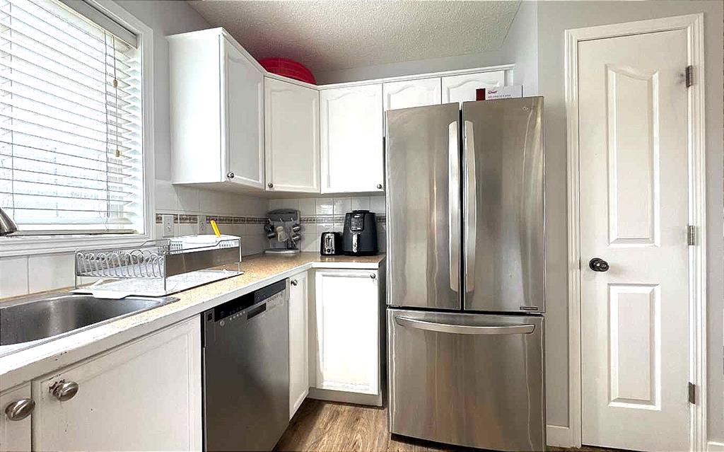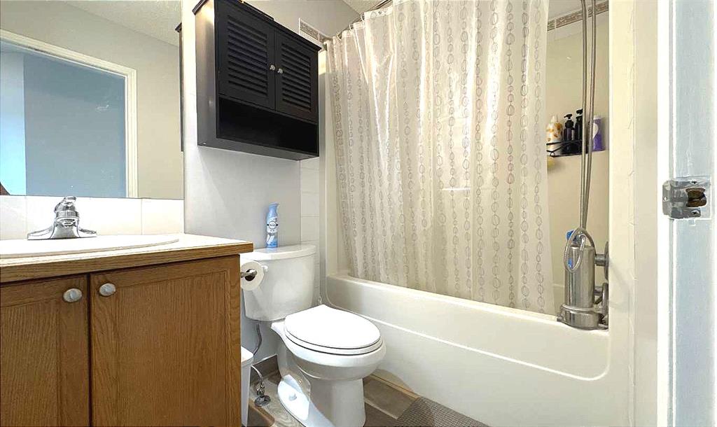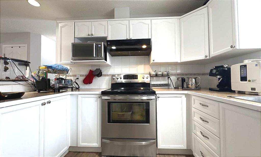 Discover modern comfort in this renovated home with a total of 4 bedrooms and 4 washrooms ( 1 primary ensuite bathroom 4pcs, 1 common 4pcs, and 2 x 2pcs). The fully finished basement consists of an additional bedroom, a gym room & a 2-piece washroom. The seller had replaced all the flooring with vinyl planks last year and new paint throughout the whole house. Private backyard with deck. 2 assigned parkings stalls located at the front of the unit. Walk to playground & hockey rink, easy access to Highway 1A. This bare-land condo allows pets. The seller would include 2 Anespa Shower filtration systems & a (K8) Ionizer, which is a top-of-the-line quality drinking system, a total value worth over $10,000.