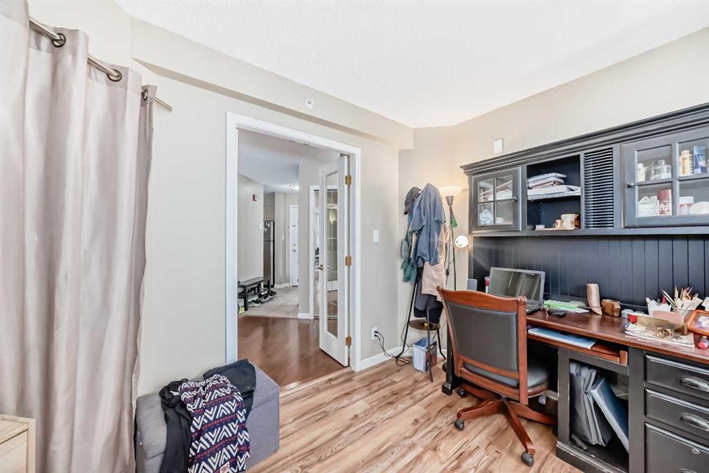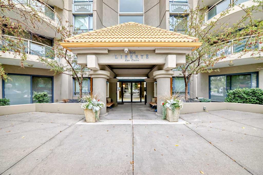 Welcome to the Liberte eau claire a great place to call home. This 2 bedroom unit with den has river and city views from the 2 balconies off of the den and living room. The open concept living -dining area has a gas fireplace, balcony and engineered hardwood floors, the kitchen has an island with breakfast bar, stainless steel appliances as well as granite countertops in kitchen and bathrooms. Double french doors lead to the den with a second balcony. Both bedrooms have large windows, with vinyl plank flooring and the master features his and hers walk through closet area, a 4 piece ensuite bathroom as well as laundry area with storage. There is an underground titled parking stall as well as a storage unit on the P 1 level. The Liberte amenties include a large party room with full kitchen, a well equipped gym, bike storage and an outdoor tennis court. Easy walk to the river and princes island park, as well as bike paths, restaurants , transit and shopping.