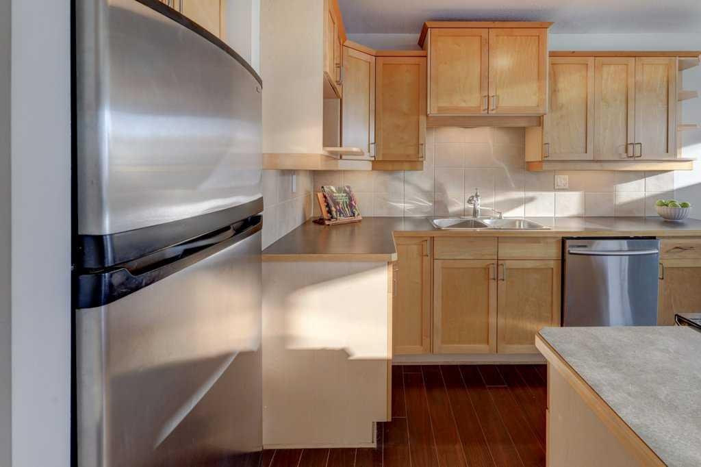 Enjoy relaxed urban living in this bright top-floor corner unit, perfectly positioned just one block from the trendy 17 Avenue District. Set in a quiet concrete building with only four units per floor, this updated condo offers 958 sq. ft. of well-designed living space with 2 bedrooms and 1 bathroom. The primary bedroom is generously sized with plenty of room for a king size bed and the second bedroom is ideal for guests or a home office. The spacious living room features a cozy wood-burning fireplace and opens onto an enclosed wraparound balcony, ideal for year-round enjoyment. Freshly painted with a new vented stove, in-suite laundry, plus secure underground parking and a separate storage locker for added convenience..