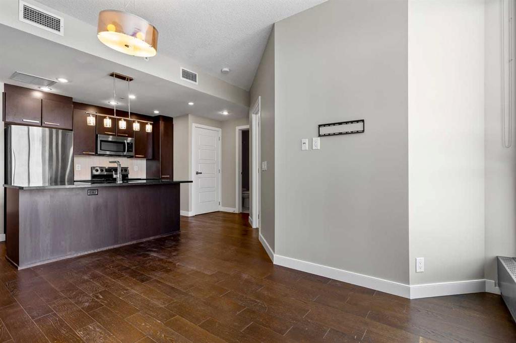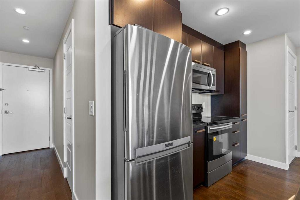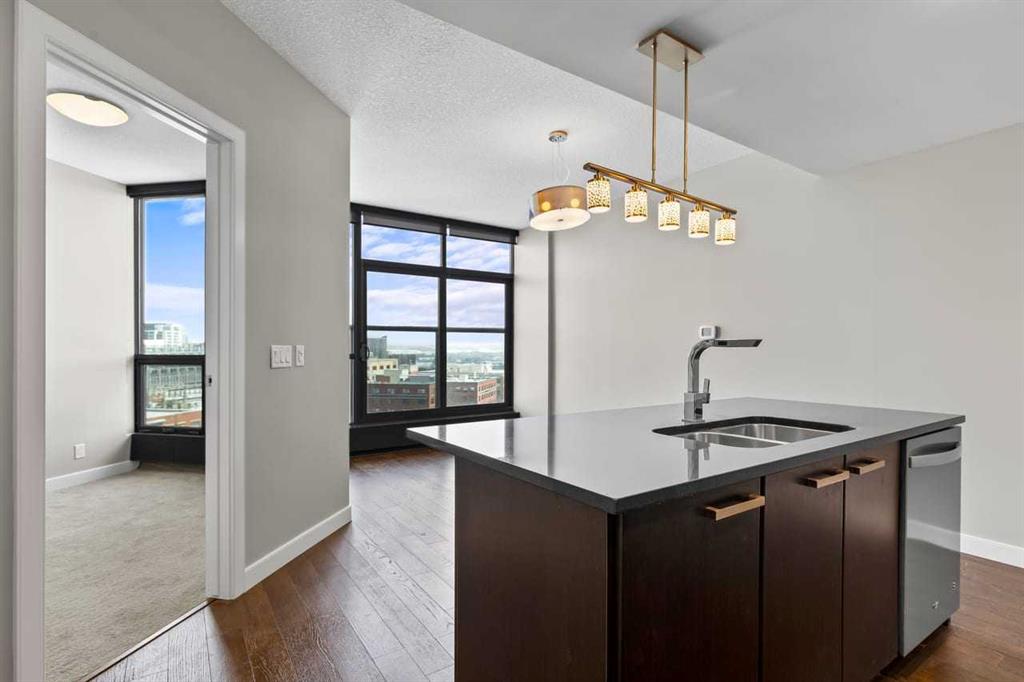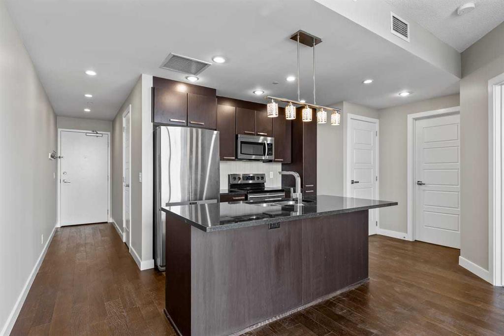 INVESTOR ALERT!!!! Great location, steps away from Stampede LRT, 17 Ave, Saddledome, Sunterra, Downtown and more. This is a low-maintenance unit, and it's been rented from day 1. Modern style open concept with large windows. Cozy unit with engineered hardwood floors, granite countertops and stainless steel appliances. Private access to Sunterra Market, great amenities with complete and high-end exercise machines and weights, hot tub, party room and guest suite. Underground parking and roof patio. Book your private showing.