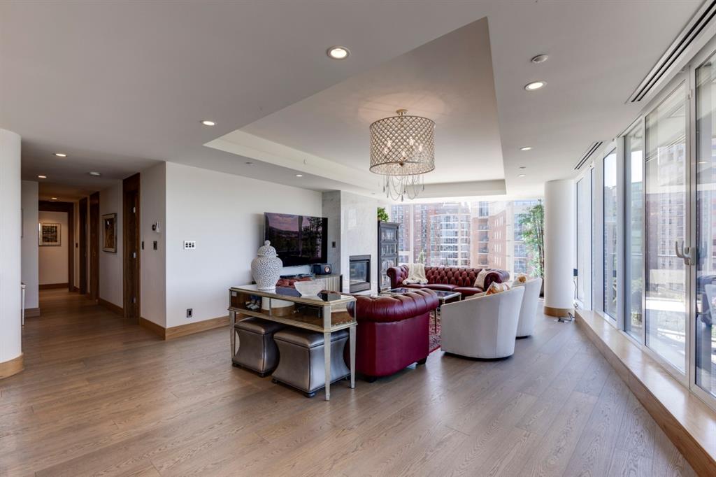 Welcome to The Concord; a magnificent riverside residence reflecting the essence of luxury living. A landmark anchored in the pulse of Calgary’s most affluent community – offering a harmoniously blended marriage of live, work, & play. Dine at one of many exquisite culinary offerings located within the community which will impress even the most well-traveled palette. Host parties in the amenities rich social lounge overlooking the summer water garden/winter skating rink fully equipped with a wet bar, summer kitchen, BBQ, and two outdoor firepits. Unwind after a long day in your very own yoga room and private gym. Come home and appreciate the opulent convenience of 24hr concierge service and the expediency of a private elevator that leads to nearly 2,000 sq.ft. of thoughtfully designed living space – showcasing some of the most impressive views that Calgary has to offer. Displaying the highest level of craftsmanship and luxurious interior tailoring within each room including: German engineered Poggenpohl kitchen, Miele appliances, engineered hardwood flooring, Bianco Carrara marble features, rich walnut detailing, custom built-ins, tray ceilings, expansive windows, heated tile flooring, and so much more. Complete with a private double garage (with room for a double car lift) and storage. Call today to set up your private tour.