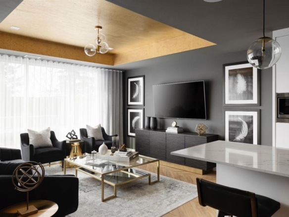 Experience modern living in this spacious 3-bedroom, 2-bathroom corner unit at Waterside at Mahogany by Logel Homes. Enjoy Jersey Cream cabinetry with champagne bronze hardware, London Fog quartz countertops, and premium stainless-steel Samsung appliances. Features include LED undercabinet lighting, custom hood fan, upgraded tiled bathroom flooring, Moen Bronzed Gold fixtures, and a luxurious ensuite with a walk-in shower and sliding glass barn door. Offering a generous 1,293 square feet of space, The Azure includes three spacious bedrooms and two stylishly designed bathrooms. Whether you're seeking room to grow or space to entertain, the Azure floorplan combines comfort and sophistication, redefining your urban living experience.