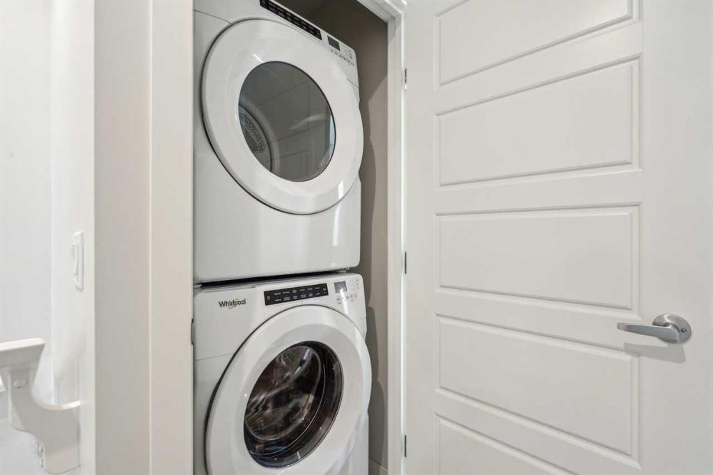 Welcome to Ambrosia, a beautifully designed 2-bedroom, 2.5-bath, two-storey stacked townhome in the scenic community of Crimson Ridge. Take in stunning views of the Bow Valley River, Downtown Calgary, and Canada Olympic Park, with a golf course just steps from your door. The open-concept main floor is perfect for entertaining, featuring a spacious kitchen island and luxury vinyl plank flooring throughout the main level and bathrooms. Upstairs offers two generous bedrooms designed for comfort and privacy, including a primary bedroom with walk-in closet and private ensuite, along with the convenience of upper-floor laundry. Built for superior energy efficiency with triple-pane windows and enhanced insulation, this home provides year-round comfort and reduced energy costs. Thoughtfully crafted for modern living. Photos are representative.