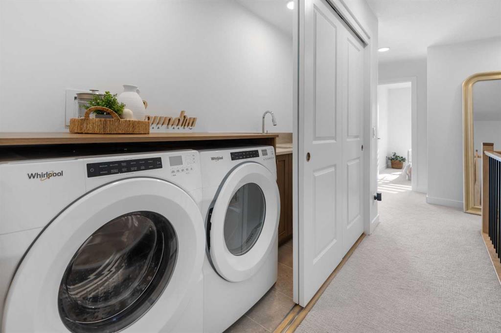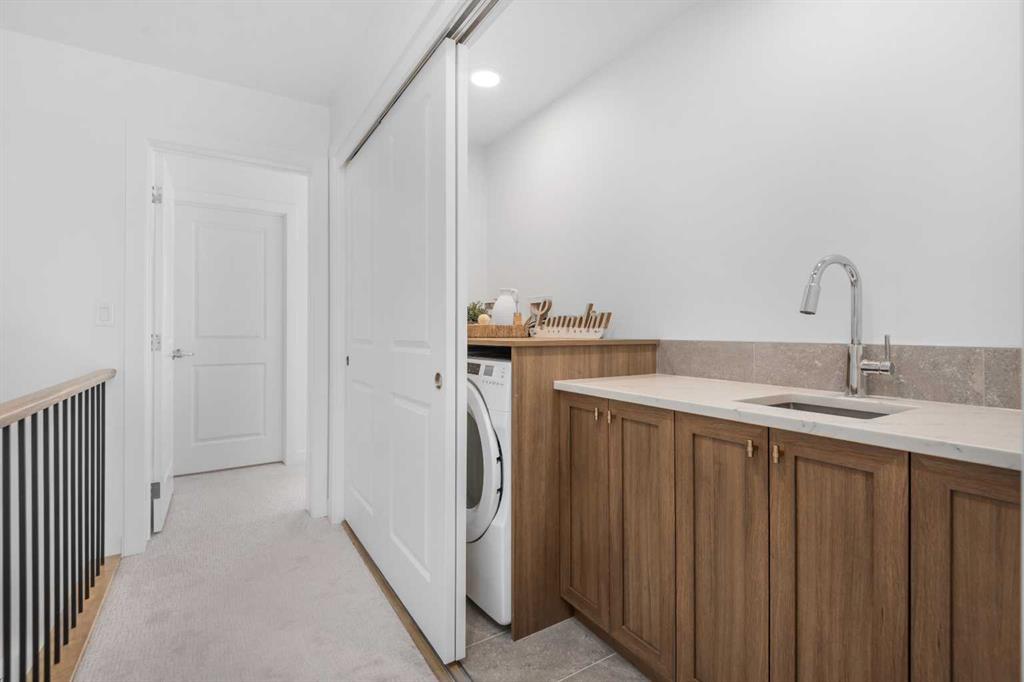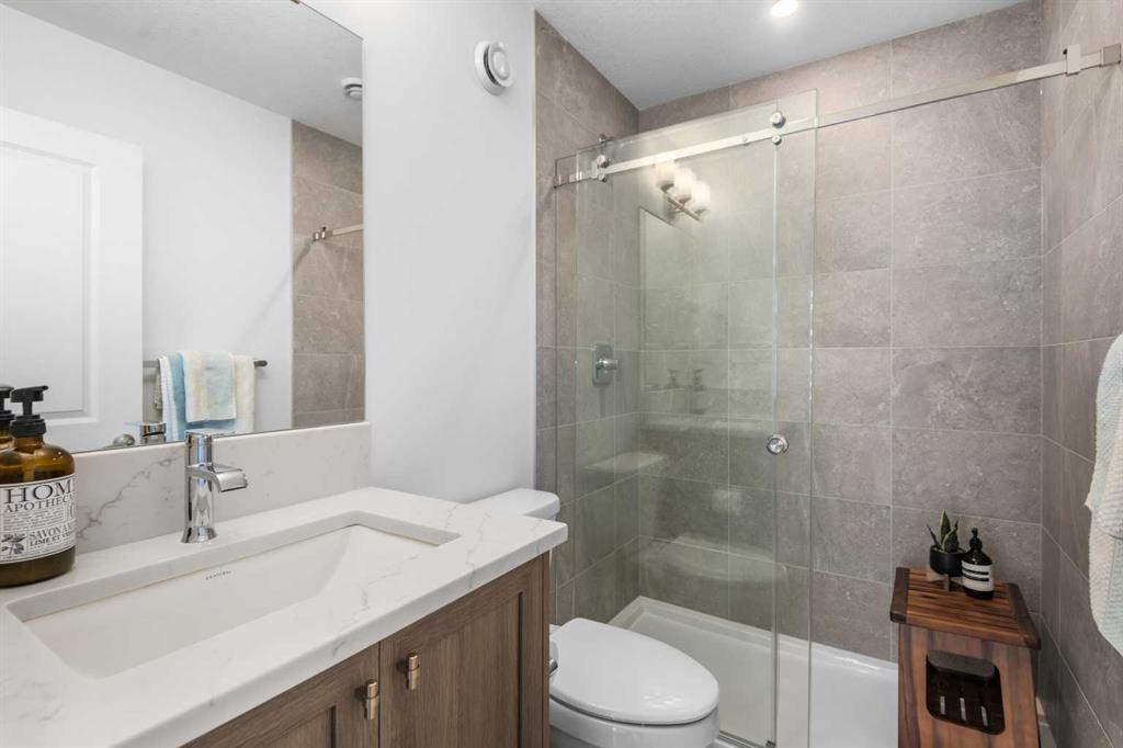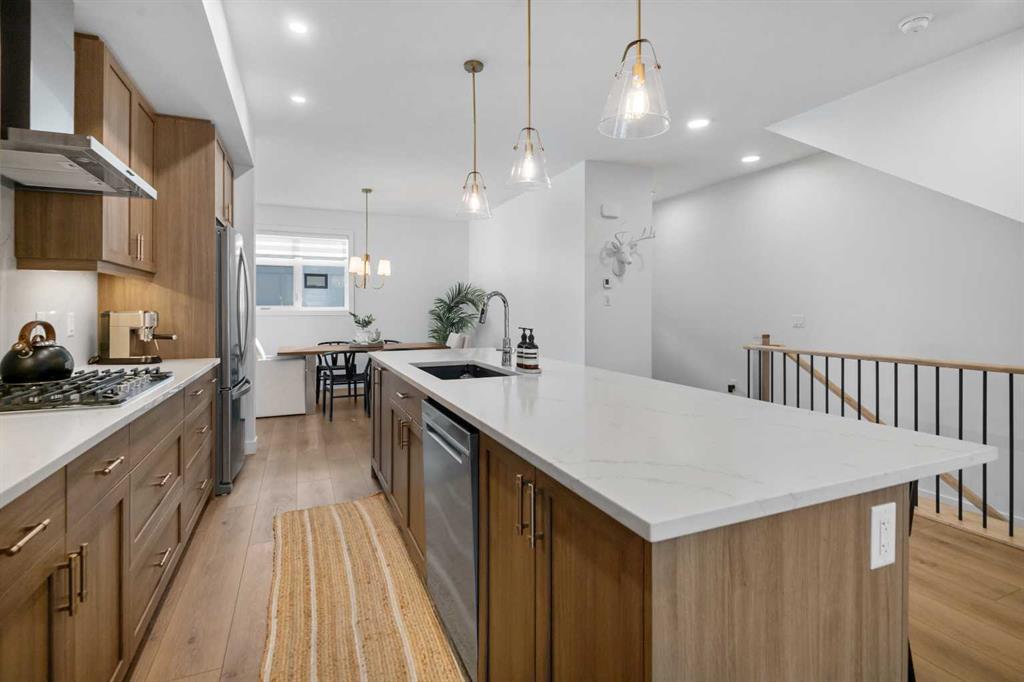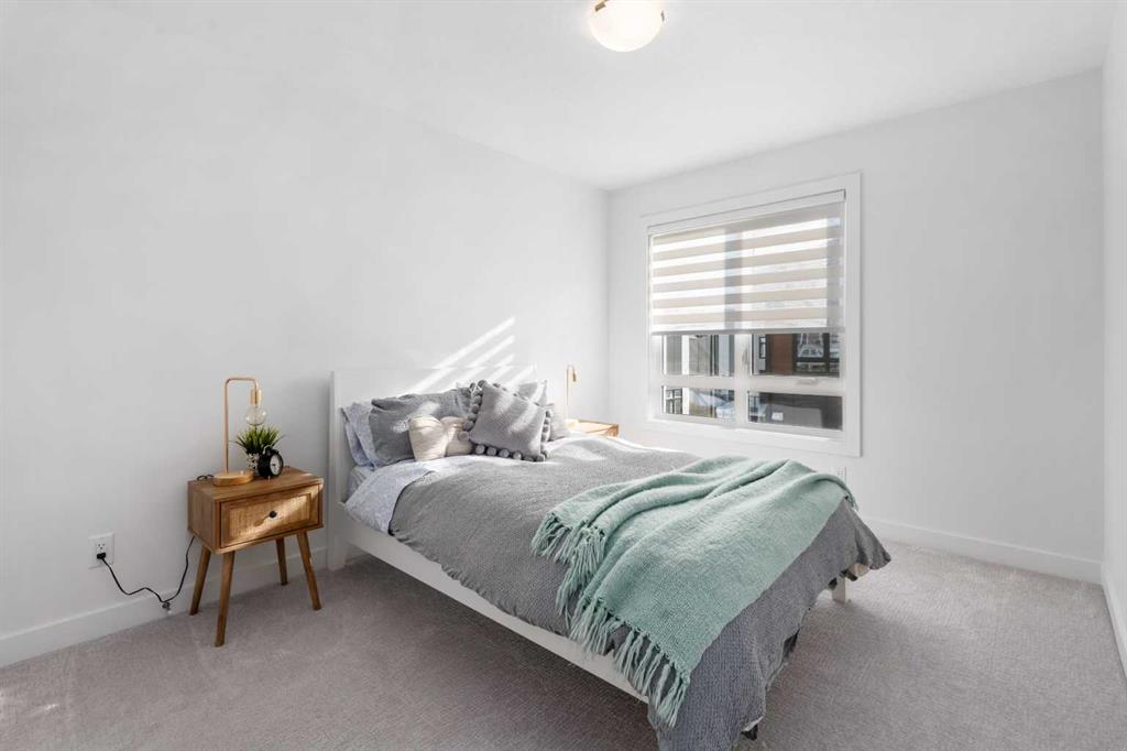 Trico homes brings to West Springs one of the best designed townhomes in this amazing master planned community. Close to everything you would ever want, and in true walking distance. This bright and abundantly spacious corner unit features 4 bedrooms, 3.5 baths, with a unique main level bedroom with full ensuite. As you enter your custom home from your double attached garage, you are greeted into a large foyer. The bedroom/den on this level is very convenient, and a flexible option. The second level boasts 9 foot ceilings, is bright, spacious, fully open, and features a fantastic centre kitchen plan. The formal living and dining rooms are on either side, making this the perfect entertaining space, or just enjoying day to day luxury living. The kitchen was with modern quartz counters and matching upgraded full backsplash. High end appliances for your cooking enjoyment, include a counter gas stove and wall ovens. The kitchen Island is the perfect gathering place for friends and family, as the chef prepares culinary delights, surrounded by premium cabinetry and fixtures. Off the living area there is a huge balcony which can be used as a relaxing extension of the main living area, or additional dining and bbq space, for year round relaxation. The upper floor features 3 additional bedrooms. Two bedrooms facing south with large windows, and a main full bath. The master is truly spacious , bright, and of course has a fantastic ensuite with dual sinks, tub, shower, and walk in closet. This level conveniently has a laundry room, with sink and custom cabinetry. Upgrades total over 30k for this unit which makes it the best value on the market, with 4 Bedrooms and 3.5 baths, and truly like new! The location is unbeatable, close to all parks including the off leash radio park, shopping, restaurants, schools and all of West Springs amazing amenities. Motivated seller due to relocation.