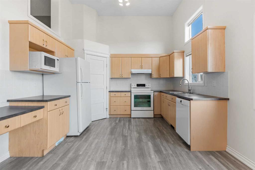 OPEN HOUSE THIS WEEKEND - SAT-SUN, NOV 15-16 from 2pm-4pm!! Welcome to The Turnbury in Crystal Shores, a sought-after pet-friendly complex (max 3 pets with board approval!) steps from the residents-only beach at Crystal Shores Lake and across from Crystal Ridge Golf Course. This bright end renovated unit backs directly onto the course with no neighbours behind and lovely views from the kitchen, dining area, deck and upper rooms. The inviting foyer leads to a sunlit kitchen and dining space with vaulted ceilings, a corner pantry and direct access to the deck with gas hook-up. A few steps up, the living room features a large window and a cosy corner gas fireplace, ideal for relaxing or entertaining. The flexible loft on the upper level is perfect for a home office, reading nook or even a bedroom if needed. On the same level, you will find two generous bedrooms. The master bedroom has stunning views of the pond and the golf course. The lower level is an undeveloped basement, great for storage today and ready for your creativity tomorrow. Parking is easy with an attached single garage and driveway. Walk to the lake and beach club, playgrounds and pathways. Minutes to schools, shopping, restaurants, recreation and all the amenities of vibrant Okotoks. This is a perfect family home or an investment property. School boundaries: K to 6 attend Dr. Morris Gibson, grades 7 to 9 attend École Okotoks Junior High, and grades 10 to 12 attend École Secondaire Foothills Composite High School or Alberta High School of Fine Arts. Pet policy summary: household pets only, subject to Board approval. No livestock, snakes, reptiles, arachnids or fowl. Maximum of 3 pets per unit. Note that the Rheem Performance Platinum water tank is just 2 years old. Book a showing today and view the 3D iGuide virtual tour!