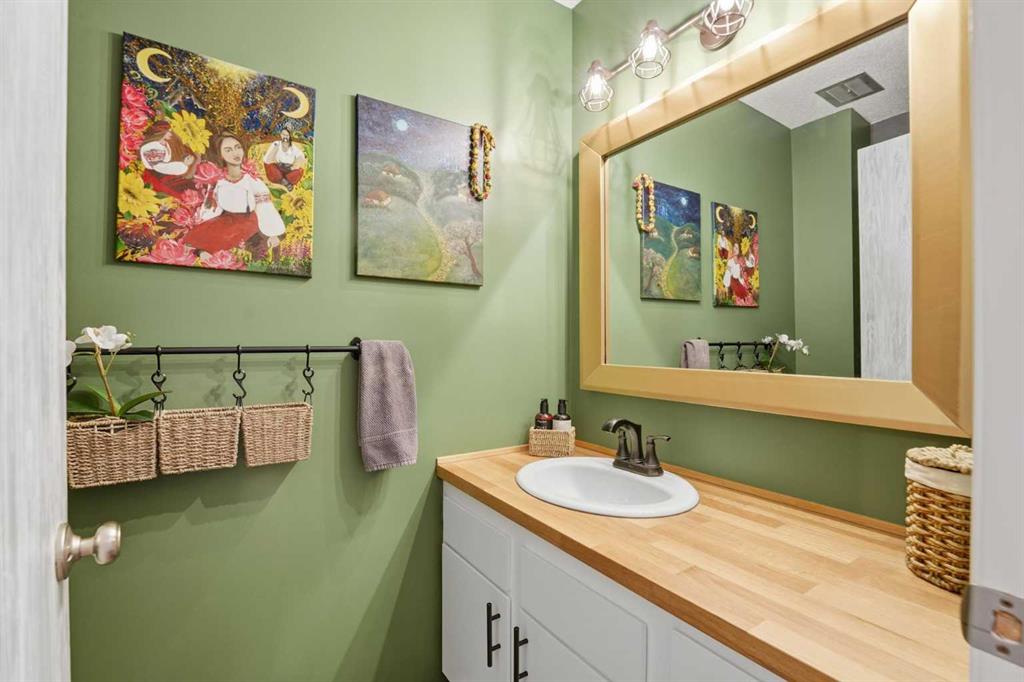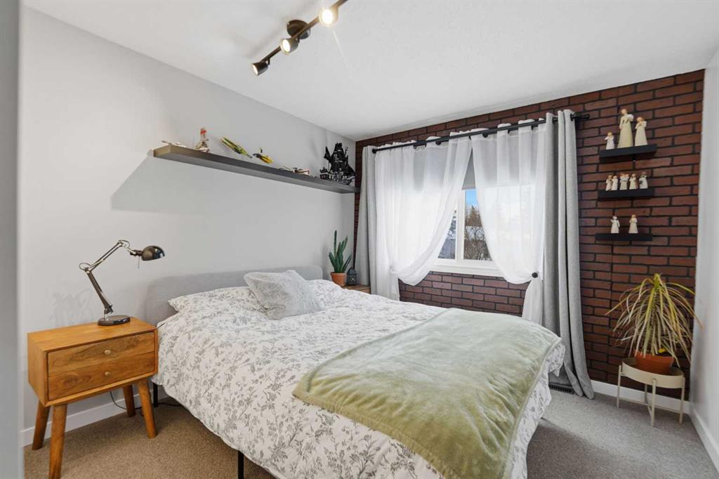 Off the kitchen, the comfortable living room showcases a stylish accent wall and patio doors leading to an inviting backyard with a deck and mature trees—ideal for relaxing after a long day or enjoying your morning coffee. This level is completed by a convenient 2-piece bathroom.
