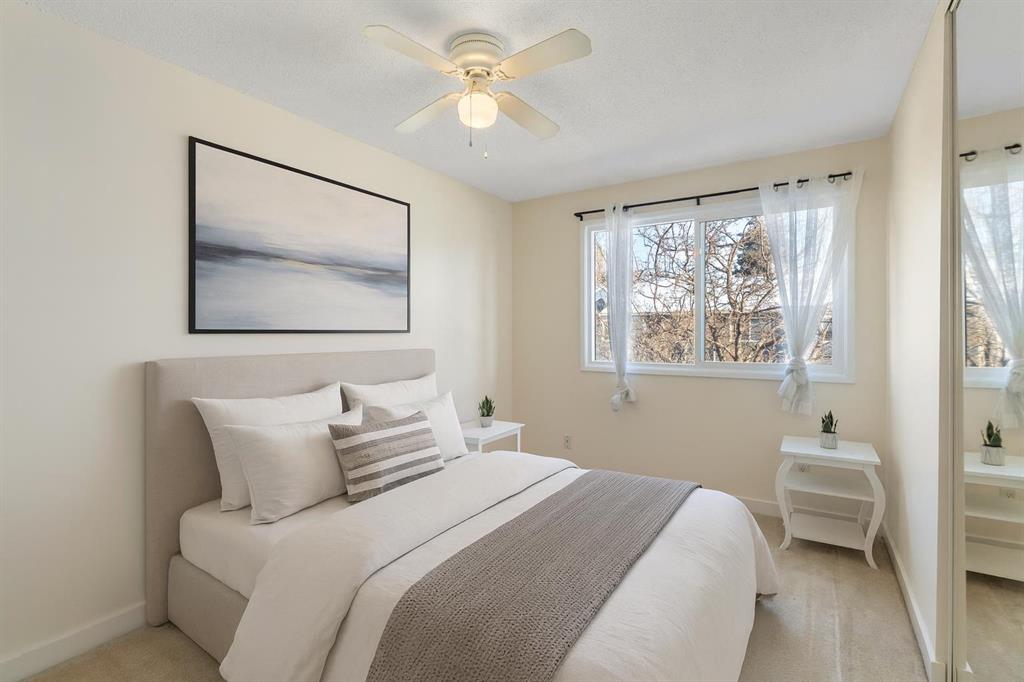 Wow! Fresh paint, updated kitchen, super cute courtyard! Welcome to this 2 bedroom townhome located in the established community of Acadia. This private complex is very well located with a ton of nearby amenities. The property boasts a private fenced courtyard leading to the front entrance. Step in to the bright and open main floor featuring fresh pant and a new backsplash in the kitchen. The kitchen peek-a-window opens up to the living room with a lovely feature wall and glass sliding door to your private patio. Upstairs features two bedrooms with tons of closet space and 4pc bathroom. The unfinished basement offers a ton of extra storage and a full sized washer/dryer. Please refer to the virtual tour for a 3D view of the interior. With close proximity to LRT, Acadia Rec Center and Bonaventure park this townhome is one you won't want to miss!