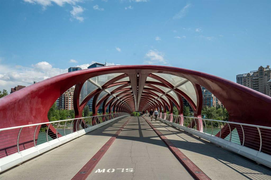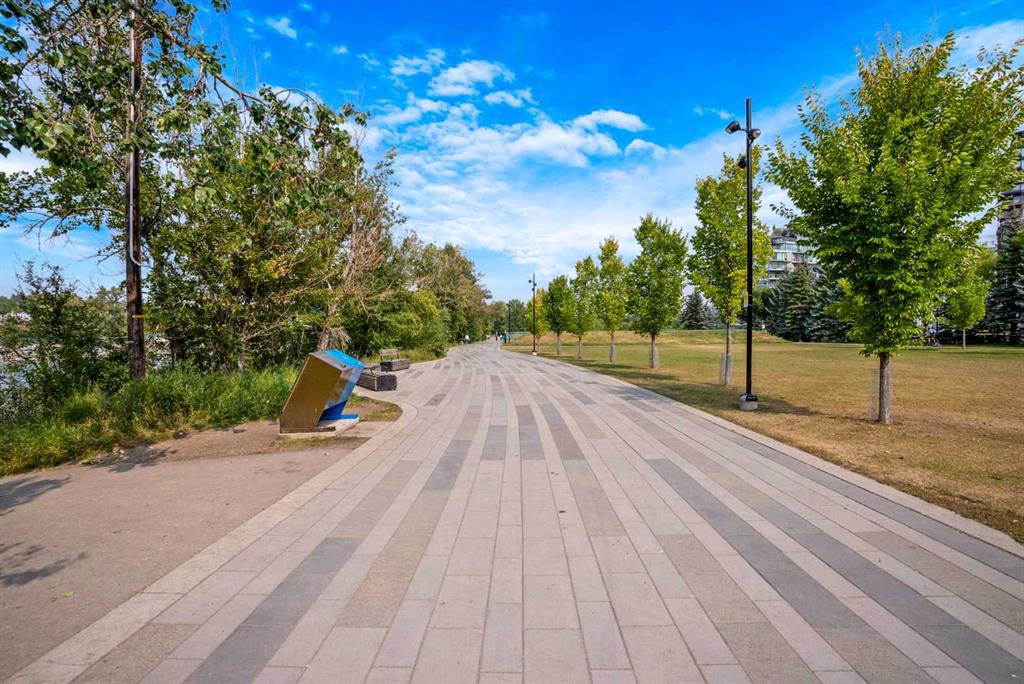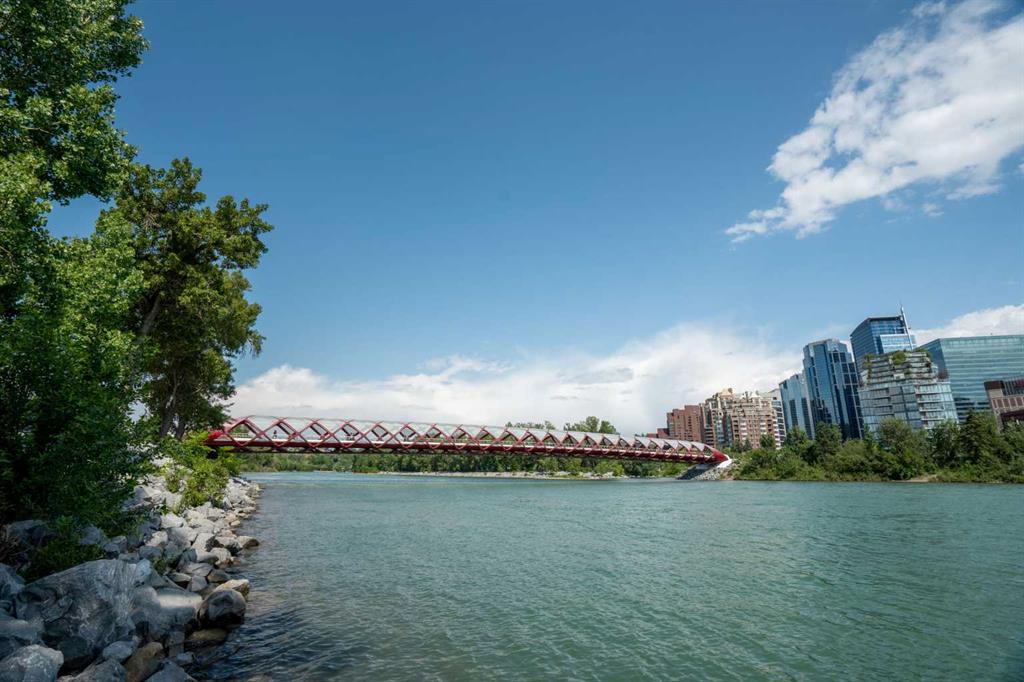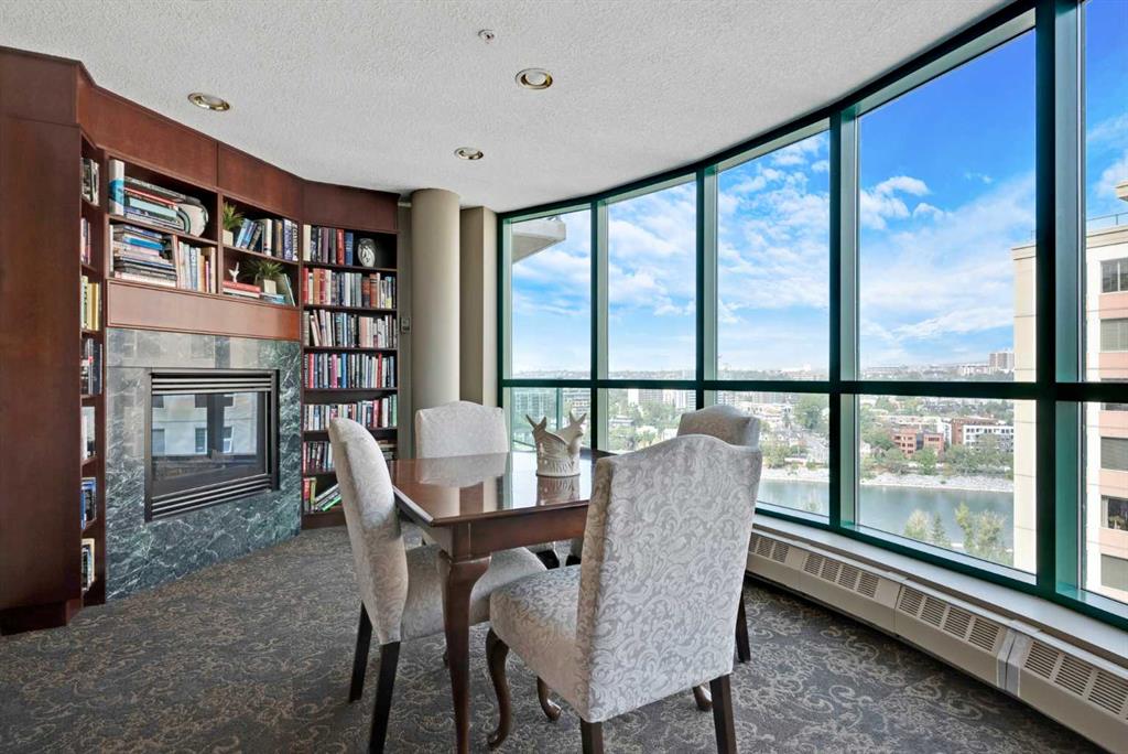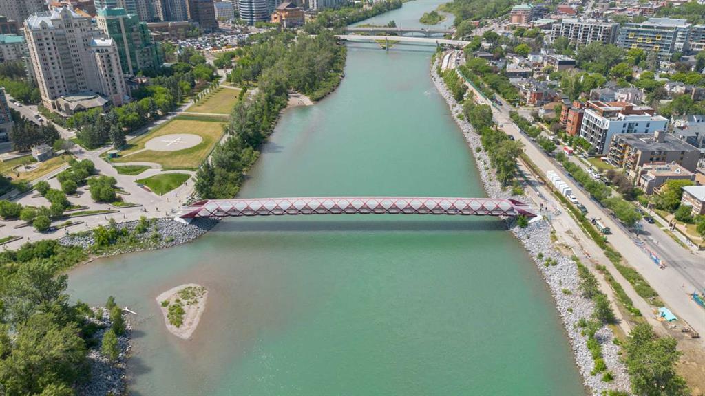 Just steps to the Bow River Pathways and the beauty of Princess Island Park in the sought community of Eau Clair. This 9th floor, 926 Sq ft condo offers relaxing partial river & area views from your large south facing balcony. Concrete building, with Titled underground parking + your own huge private Titled singular storage locker. Stepping inside, balances warmth and functionality with abundant natural light, creating a bright and comfortable atmosphere. The open concept design provides various options for furniture arrangement in the spacious living room with cozy Gas Fireplace. Flowing seamlessly, a good sized dining area provides plenty of room for entertaining and family dinners. Hardwood floors. A well laid out kitchen with ceramic flooring. The Primary Suite offers a 4pc ensuite. 2nd bedroom, 3pc main bathroom. In-suite laundry & storage. Amenities include Gym, social rm- (main level), Outdoor Terrace/Sundeck -(10th fl), - Library, with great views of DT- (14th fl,) Car wash bay, Pets with board approval. Age restricted, one occupant must be over 30. A well managed building & reasonable condo fees. Visitor parking. Enjoy the fabulous Eau Claire lifestyle-restaurants, parks, pathways, downtown, transit, amenities, all close by. Immediate possession.