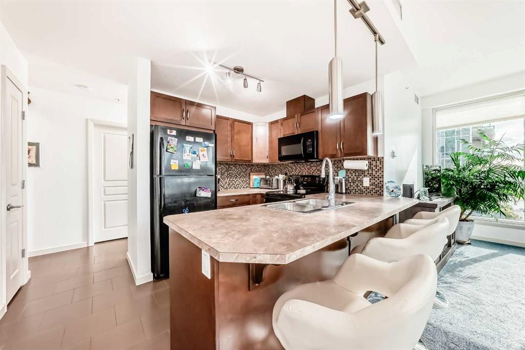 SOUTH WEST CORNER SUITE 2 BDRM, 2 BATH WITH VIEWS OF THE MOUNTAINS. Welcome to the Alura building, a modern gem located in the heart of Victoria Park within Calgary's vibrant Beltline district. You will not be disappointed with this condo and its location. Almost 800 sq ft, excellent open floor plan with bedrooms separated, 9-foot ceilings, luxury vinyl plank flooring, floor-to-ceiling shaded windows, and a large balcony. Enjoy sunsets and surprisingly quiet evenings as the windows in this building are excellent and provide superior soundproofing. The kitchen is very functional and has plenty of counter and storage space. The package includes a titled underground parking stall, a dedicated storage locker in the parking area, and access to visitor parking. Residents benefit from premium amenities, including an on-site fitness center, resident lounge, full-time concierge service, and round-the-clock security. Ideally located within walking distance of downtown, 17th Avenue, Stampede Park, Starbucks, Shoppers Drug Mart, Sunterra Market, and the Victoria Park C-Train station, it also offers quick access to scenic river pathways for cycling and walking. Experience the best of 18+ living.