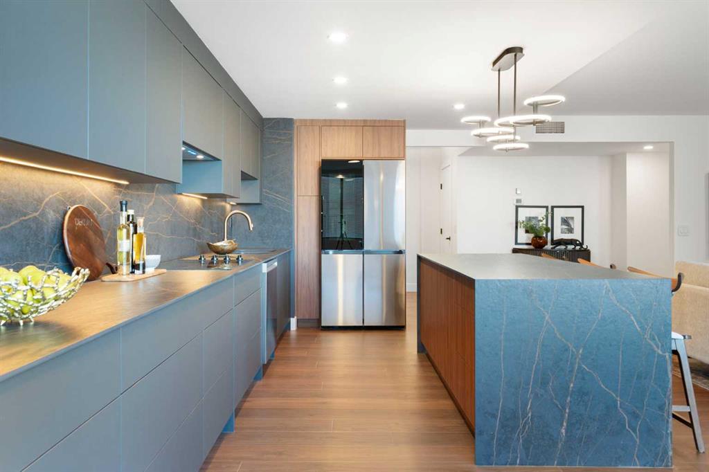 Beautifully reimagined with a modern open-concept design, this home is ideal for both daily living and entertaining. The showstopping kitchenfeatures custom-built cabinetry crafted from premium materials, including Dekton countertops with a waterfall island, a stylish appliance package with wall oven, and a Zephyr wine cooler. The layout easily accommodates both a formal dining area and a welcoming living room, each framed by breathtaking downtown vistas.
