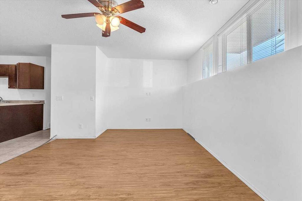 WOW! If you’re looking for a fixer upper, look no further. This home has it all! No need to worry about the previous “designer” choosing the wrong shade of grey and installing shag carpet instead of LVP. This renovation is YOU and only YOU. Flooring- you choose; cabinets that need refinishing (do you freshen up the brown, go white or perhaps navy blue with gold- simply stunning!!), and walls that need painting (always make sure you repair holes, cracks and other imperfections before painting) . You might just become besties with the staff at your local hardware store. So what are you renovating? The foyer leads down the stairs to an open concept living area complete with a large living room, breakfast nook and U shaped kitchen with stainless steel appliances (AS IS). Down the hall, you’ll find both bedrooms with one bedroom having a massive walk-in closet (the second one doesn't have a closet). The 4 piece bathroom is tucked away and the laundry room/utility room is centrally located. There's a parking stall very close to the front door…just back that truck up with your tools and supplies. You are 4 minutes from the highway, and only 30 minutes to the south end of Calgary. You are a 5 minute walk from Sunshine Lake, which is beautiful this time of year if you can avoid the cobra chickens (aka geese). Call your favourite agent and local renovation contractor to book a showing! You have our permission to keep your shoes on while you view. The entire property is below grade but added to the Total Above Grade area per the 'Exception for below grade properties' that is part of RMS Principle 5.