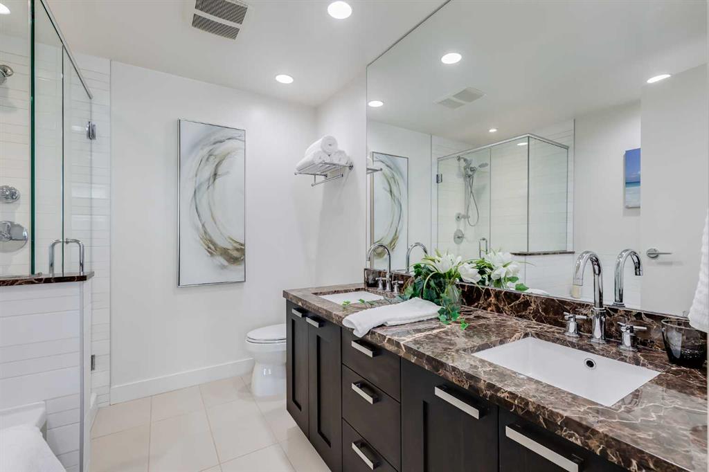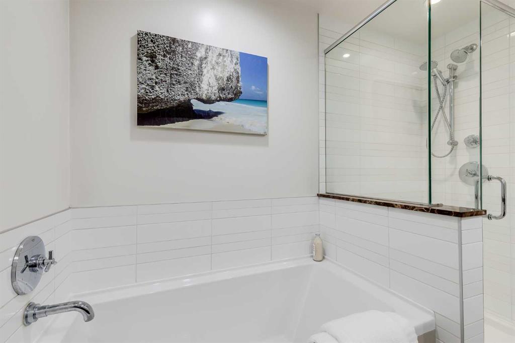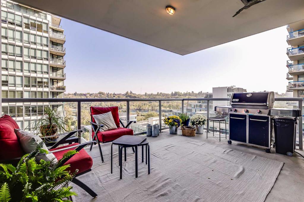 This 9th floor corner unit at Waterfront offers two bedrooms, two bathrooms, and a private office, all with impressive views of the Bow River. With over 1,100 square feet of thoughtfully designed living space, the residence combines functionality with upscale finishes for an elevated downtown lifestyle. The open-concept layout is enhanced by 9-foot ceilings and expansive windows that fill the home with natural light, extending across the main living, dining, and kitchen areas finished with rich hardwood flooring. The kitchen is designed with high-end finishes, including quartz countertops, a brand-new gas cooktop, premium built-in refrigerator, integrated microwave, stainless steel appliances, and a large island that provides both functionality and style for meal preparation, casual dining, or entertaining. Adjacent to the kitchen, a defined dining area flows into the living room, where a gas fireplace creates a warm focal point. From both the living room and primary suite, enjoy unobstructed views of the Bow River. The primary retreat features a walk-through closet and a spa-inspired five-piece ensuite, complete with dual vanities, a glass-enclosed shower, and a deep soaker tub designed for ultimate relaxation. A second bedroom is located on the opposite side of the unit for privacy and is paired with its own three-piece bathroom. Completing the layout is a full-sized laundry room with additional storage, and a separate office with sliding doors—ideal for working from home. Step outside to a generous covered balcony with a gas line for barbecuing and plenty of room for outdoor seating, all while enjoying south and east-facing views over the river and downtown. Comfort is further enhanced by central air conditioning, and the unit comes with two heated underground parking stalls plus a storage locker. The Waterfront development is known for its extensive amenities, designed to meet a wide range of lifestyles. Residents benefit from 24-hour concierge and security, a fully equipped fitness centre with yoga studio, whirlpool, and steam rooms, as well as a private theatre and owners’ lounge with pool table, televisions, and a kitchen. Additional conveniences include car wash bays, guest suites, bike storage, landscaped courtyards, and an outdoor garden patio. At street level, a selection of shops and services—including a coffee shop, restaurant, and hair studio—add to the everyday ease of living here. Beyond the building, the Bow River pathways, Prince’s Island Park, Sien Lok Park, and Chinatown are steps away, offering a balance of recreation and dining options. The C-Train, downtown offices, the public library, Stephen Avenue, and a variety of restaurants and shopping destinations are all within walking distance, making this an ideal home for professionals or anyone seeking convenience in the heart of the city. Take advantage of your opportunity to see this incredible property in person—book your showing today! Check out the floor plans and 3D tour for a closer look!