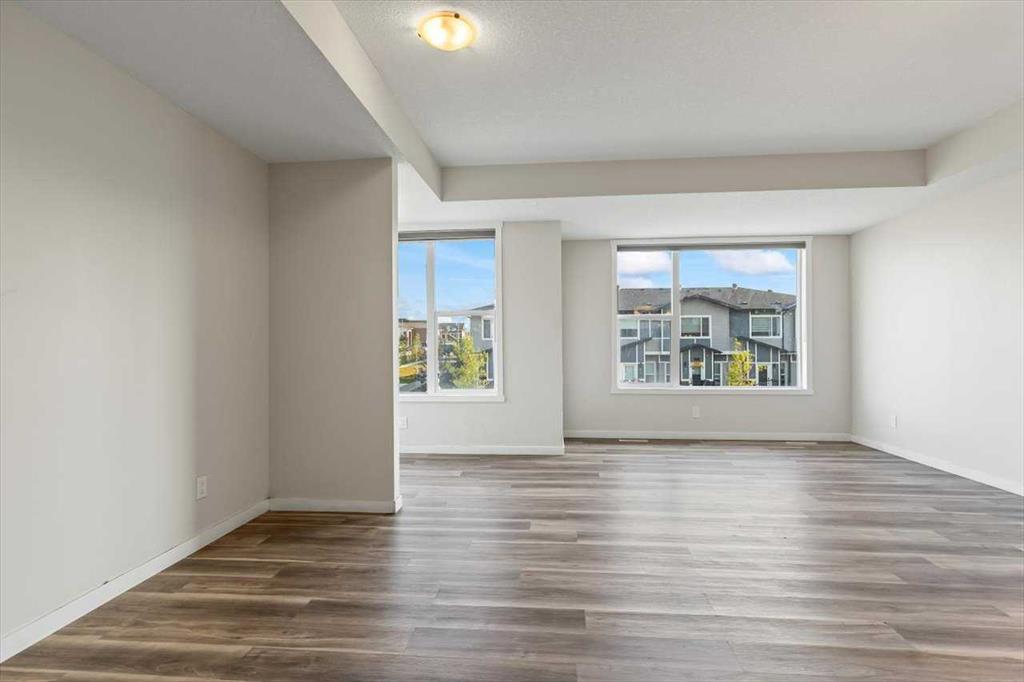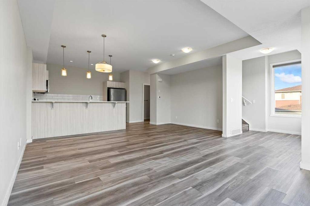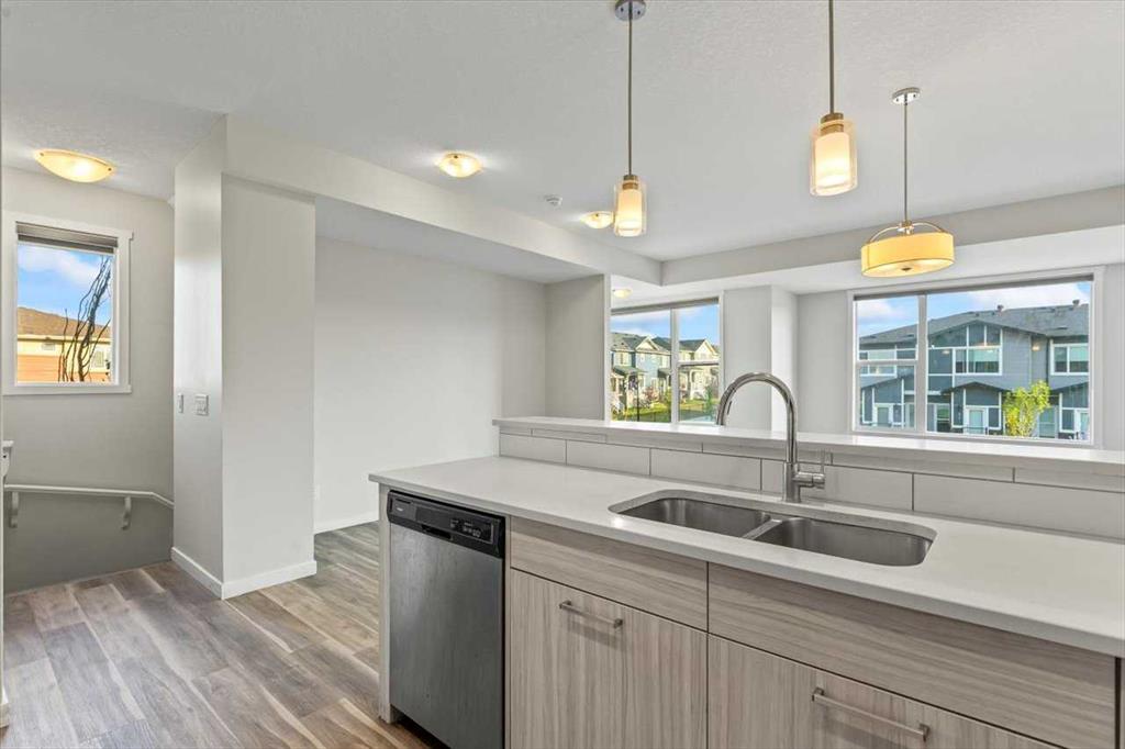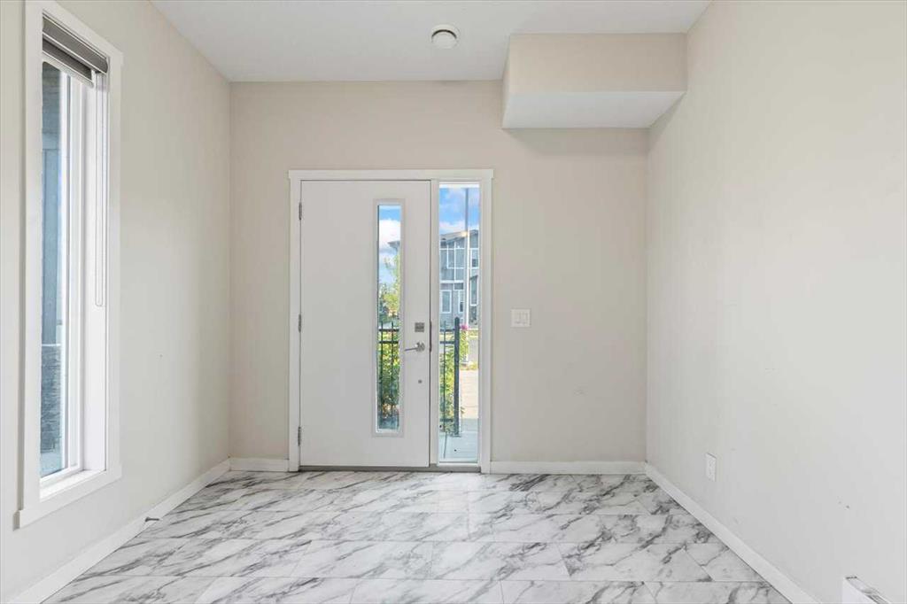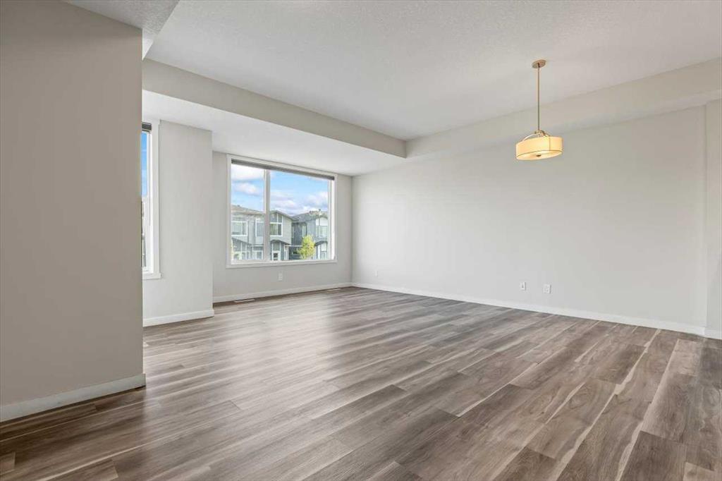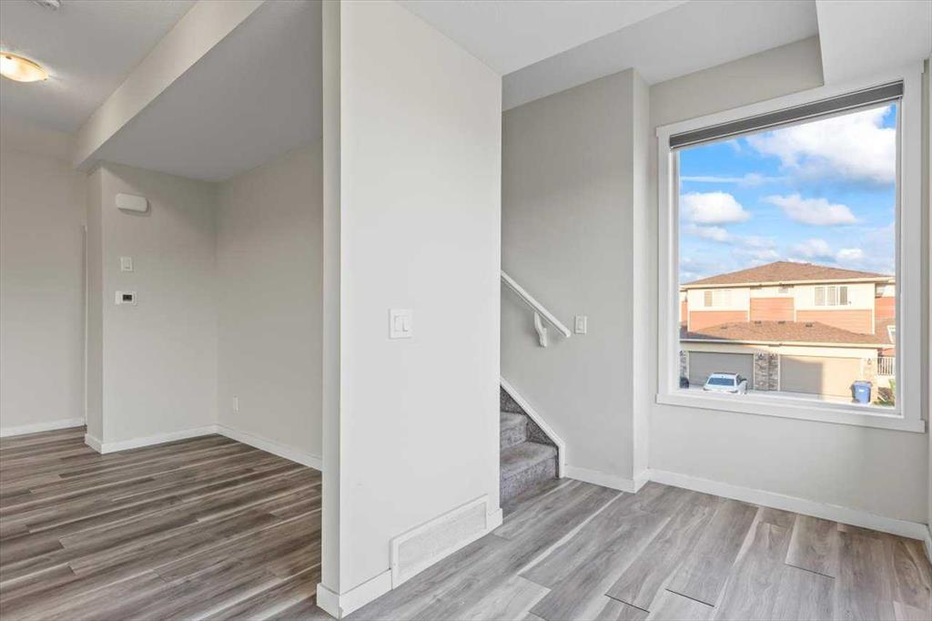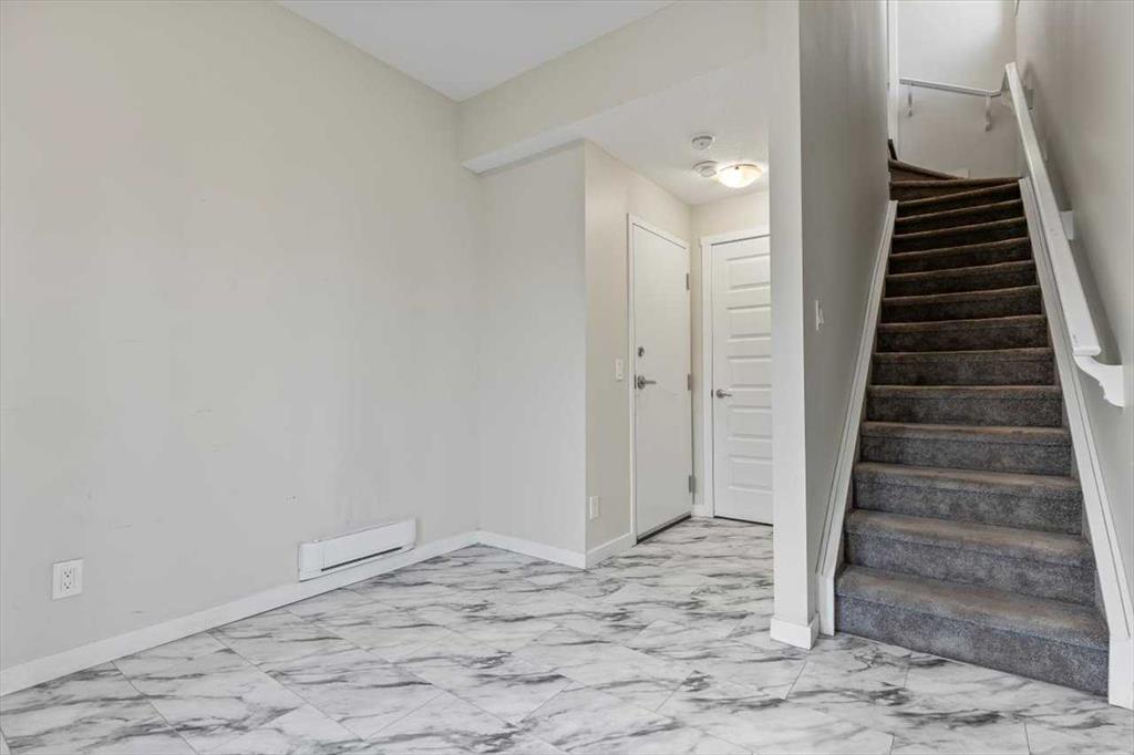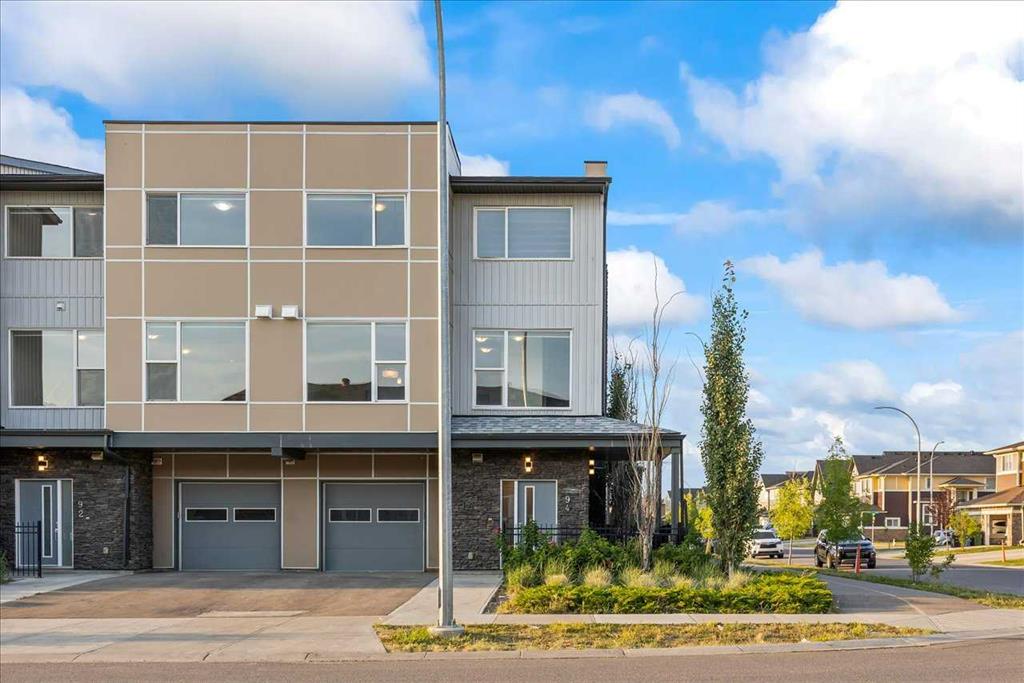 End Unit Townhome | Single Attached Garage + Full Driveway | 3-Storey | 2 Bedrooms | 2.5 Bathrooms | Upper Level Laundry | 1,534 SqFt | Open Floor Plan | Quartz Countertops | Stainless Steel Kitchen Appliances | Breakfast Bar | Ample Cabinet Storage | Bright Natural Light | Large Windows | High Ceilings | Sizeable Bedrooms | Incredible Location | Close to All Amenities | Near Saddlestone Pond & Walking Path | Minutes to CBE Hugh A Bennet School | Great Transit Access. Welcome to this stunning end unit 3-storey townhome with an open floor plan complimenting it's large living space. Step up to a gorgeous exterior with a private concrete patio great for outdoor living space. The main level opens to a foyer with a hall closet great for an organized area. This level connects you to the single attached garage which holds the utility room. Head upstairs to the 2nd level which holds your main living space. The flow throughout the open floor plan is bright and welcoming with large windows and high ceilings. The kitchen is outfitted with ample cabinet and drawer storage, stainless steel appliances, quartz countertops and a double basin sink. The raised breakfast bar with barstool seating space is perfect for small meals or socializing while you cook. The dining area has a nook which provides a dedicated space for a table or with the open floor plan- choose your own! The living room is south facing with large windows. This level is complete with a 2pc bath. The uppermost level holds 2 sizeable bedrooms, 2 bathrooms and your laundry. The primary bedroom is paired with a walk-in closet and private 3pc ensuite bath. Bedroom 2 is a great size! The 4pc bath on this upper level has a deep tub/shower combo and single vanity with storage below. The stacked washer/dryer set is tucked into a hall closet to not take away from any of your living space. This home is located to perfection! Steps from your home is the saddlelake pond with a walking path. The CBE Hugh A Bennet School is nearby and there's great transit access. Hurry and book a showing at this incredible home today!