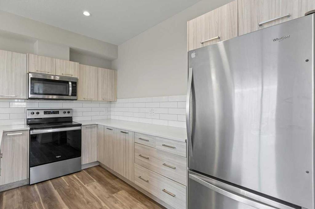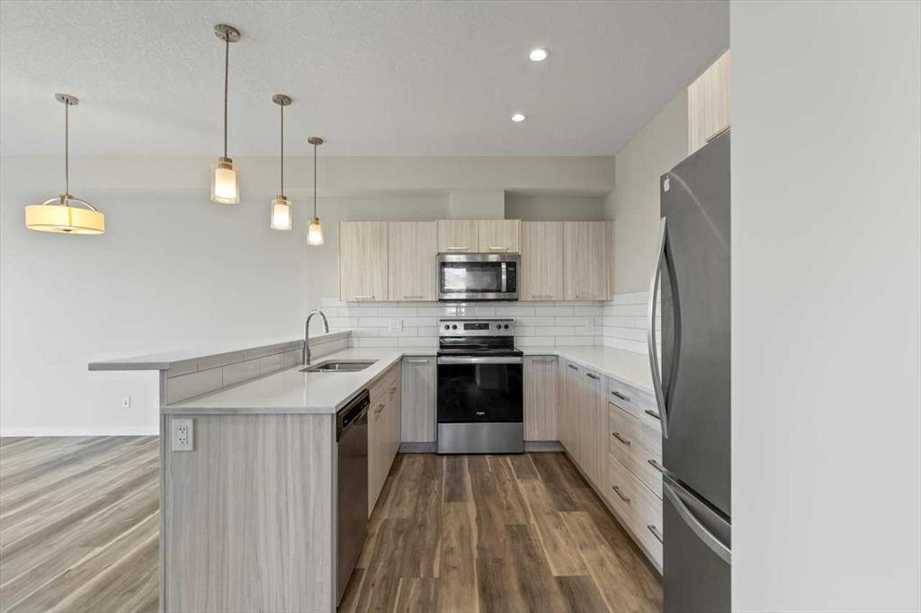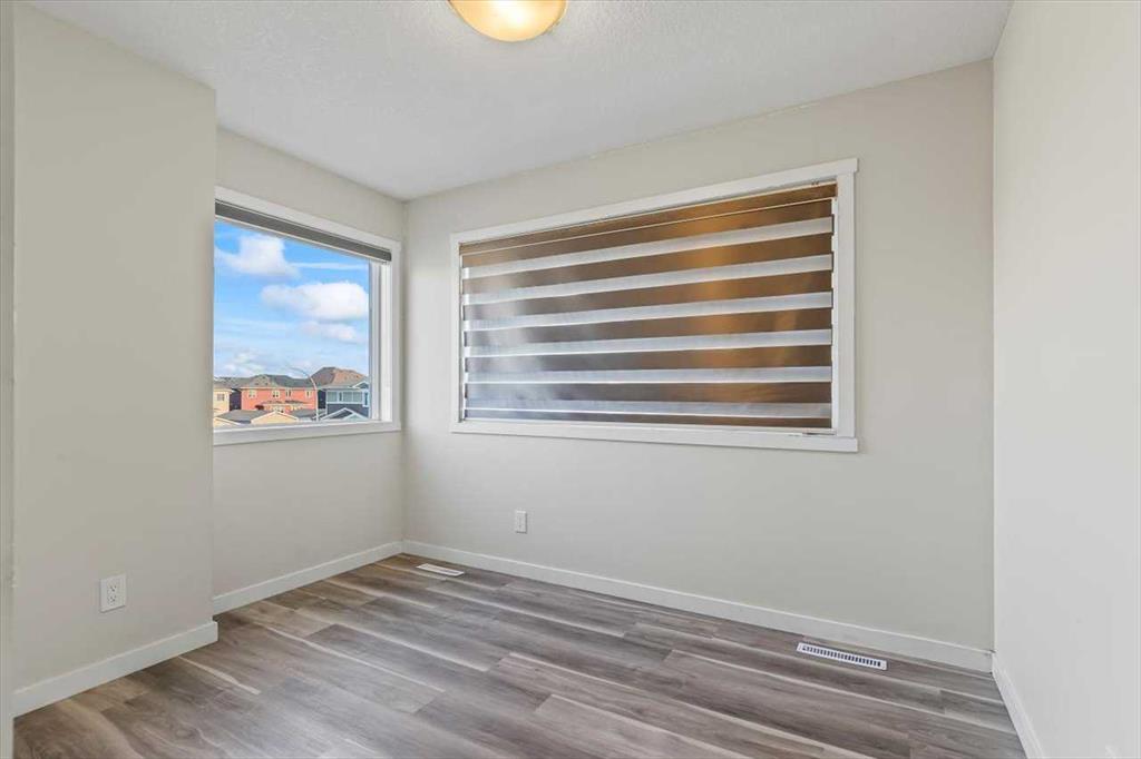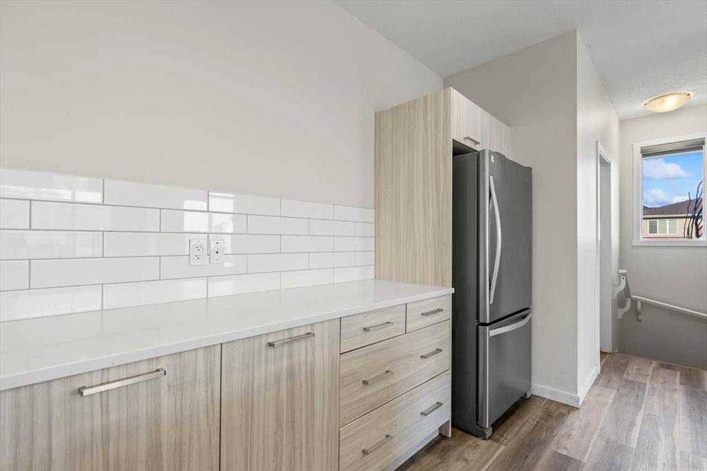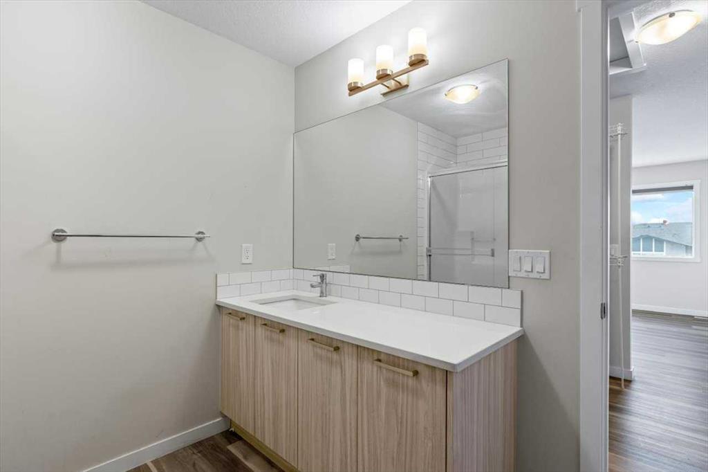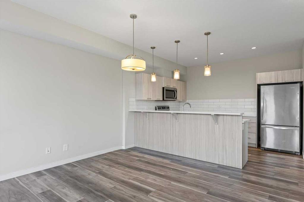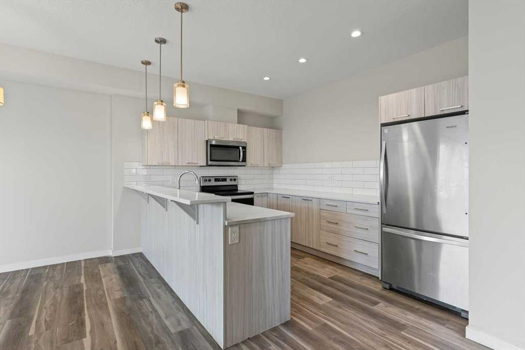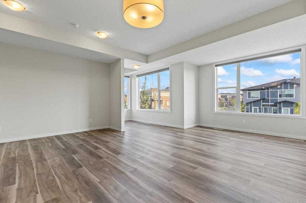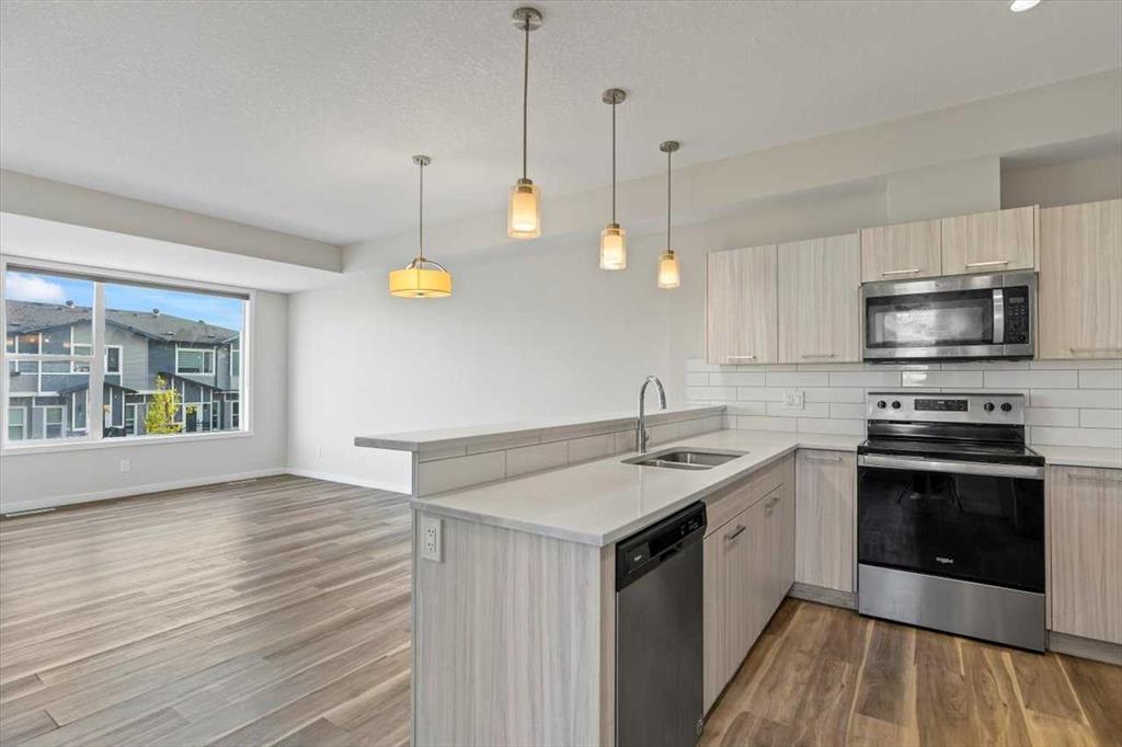 End Unit Townhome | Single Attached Garage + Full Driveway | 3-Storey | 2 Bedrooms | 2.5 Bathrooms | Upper Level Laundry | 1,534 SqFt | Open Floor Plan | Quartz Countertops | Stainless Steel Kitchen Appliances | Breakfast Bar | Ample Cabinet Storage | Bright Natural Light | Large Windows | High Ceilings | Sizeable Bedrooms | Incredible Location | Close to All Amenities | Near Saddlestone Pond & Walking Path | Minutes to CBE Hugh A Bennet School | Great Transit Access. Welcome to this stunning end unit 3-storey townhome with an open floor plan complimenting it's large living space. Step up to a gorgeous exterior with a private concrete patio great for outdoor living space. The main level opens to a foyer with a hall closet great for an organized area. This level connects you to the single attached garage which holds the utility room. Head upstairs to the 2nd level which holds your main living space. The flow throughout the open floor plan is bright and welcoming with large windows and high ceilings. The kitchen is outfitted with ample cabinet and drawer storage, stainless steel appliances, quartz countertops and a double basin sink. The raised breakfast bar with barstool seating space is perfect for small meals or socializing while you cook. The dining area has a nook which provides a dedicated space for a table or with the open floor plan- choose your own! The living room is south facing with large windows. This level is complete with a 2pc bath. The uppermost level holds 2 sizeable bedrooms, 2 bathrooms and your laundry. The primary bedroom is paired with a walk-in closet and private 3pc ensuite bath. Bedroom 2 is a great size! The 4pc bath on this upper level has a deep tub/shower combo and single vanity with storage below. The stacked washer/dryer set is tucked into a hall closet to not take away from any of your living space. This home is located to perfection! Steps from your home is the saddlelake pond with a walking path. The CBE Hugh A Bennet School is nearby and there's great transit access. Hurry and book a showing at this incredible home today!